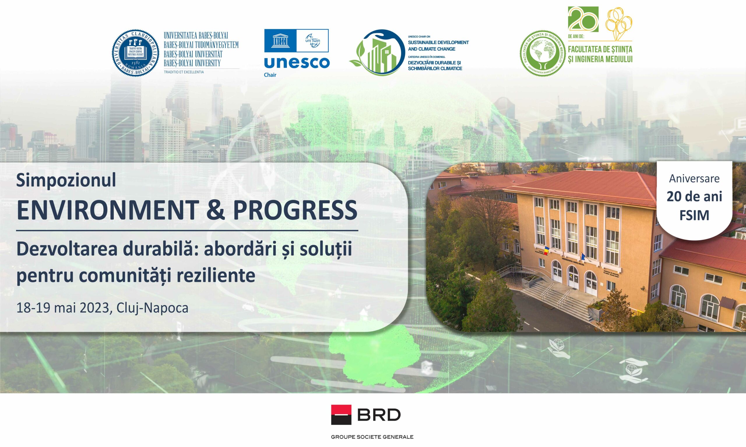 Facultatea de Ştiinţa şi Ingineria Mediului din cadrul Universităţii Babeş-Bolyai din Cluj-Napoca (UBB) organizează cea de-a XIII-a ediție a simpozionului ENVIRONMENT & PROGRESS cu tema „Dezvoltarea durabilă: abordări și soluții pentru comunități reziliente”.