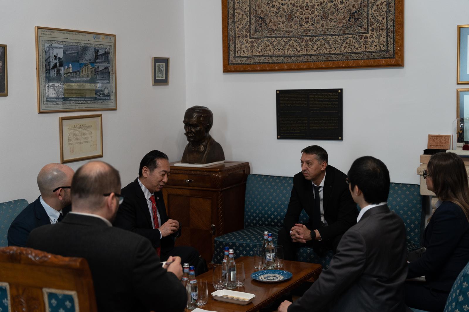 UBB are deja acorduri de colaborare cu 11 dintre cele mai importante universități din Japonia (unele dintre acestea fiind colaborări Erasmus) și găzduiește Centrul Cultural Japonez. Spre exemplu, UBB și Kobe University au creat International Collaboration Center, fiecare având câte un birou de legătură în cadrul celeilalte universități partenere. S-a subliniat importanța continuării cooperărilor academice pe componente educaționale și de cercetare-dezvoltare-inovare, iar la finalul întrevederii, s-a pus accentul pe necesitatea întăririi și extinderii colaborărilor dintre UBB și companiile japoneze.