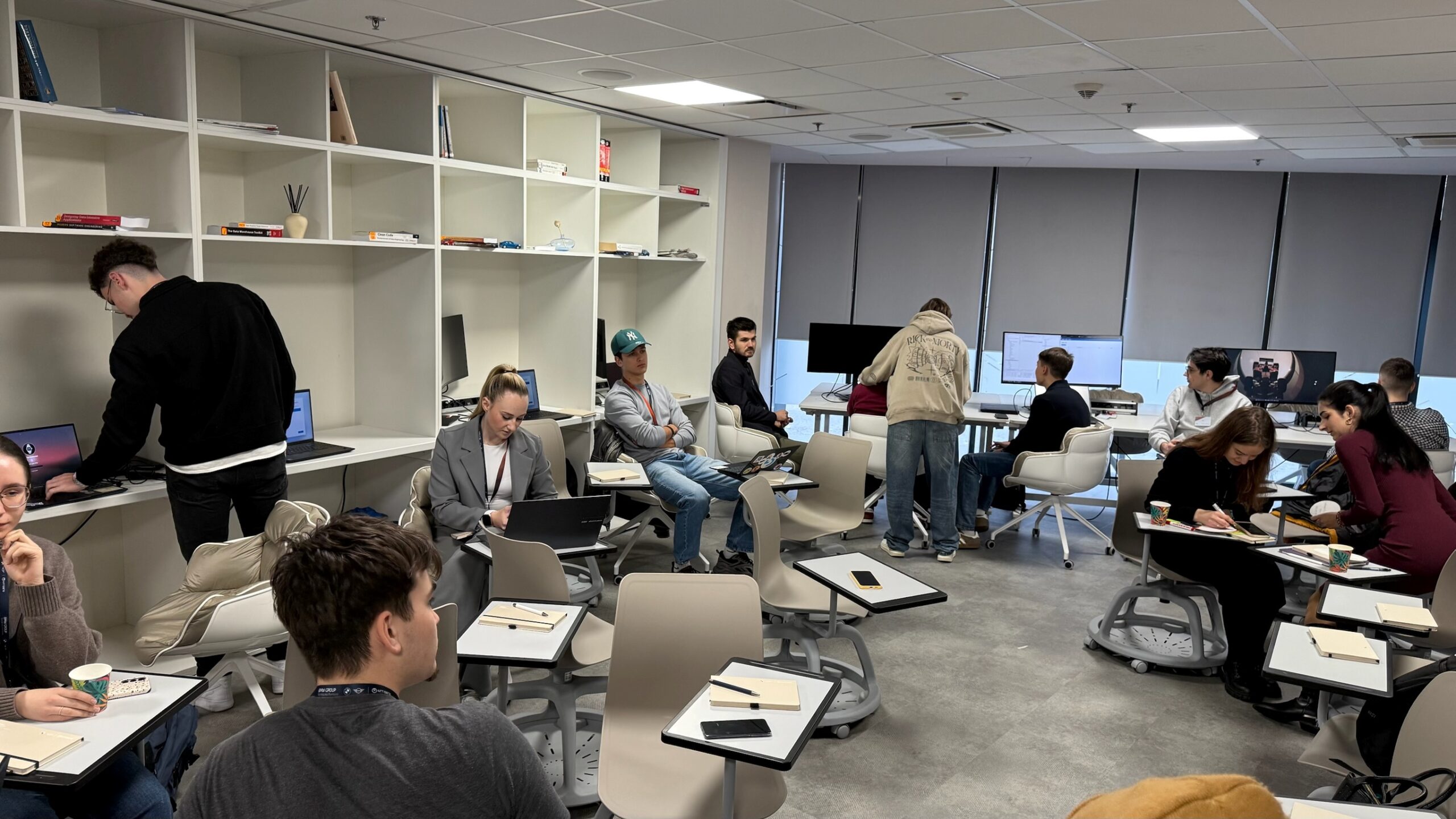 Science Café este un spațiu versatil de aproximativ 100 m², conceput pentru a răspunde diverselor nevoi ale participanților și pentru a stimula inovația și colaborarea. Mobilierul modular permite configurări flexibile, adaptabile atât pentru workshopuri în format de cerc pentru 10–20 de participanți, cât și pentru conferințe sau prezentări cu 40–50 de persoane, dar și pentru sesiuni de brainstorming și prototipare în grupuri mici. Spațiul include 10 birouri individuale dotate cu laptopuri și monitoare curbate pentru lucru și dezvoltarea proiectelor, trei zone de co-creare, pinboard-uri și whiteboard-uri mobile pentru planificare vizuală, precum și proiector și ecran pentru prezentări, demo-uri și sesiuni de pitching. Conectivitatea completă și infrastructura tehnologică asigură colaborarea atât online, cât și offline. Astfel, Science Café oferă studenților și tinerilor un mediu flexibil, inspirator și practic, în care ideile se transformă în proiecte reale, iar învățarea aplicată devine o experiență concretă de dezvoltare profesională și creativitate.