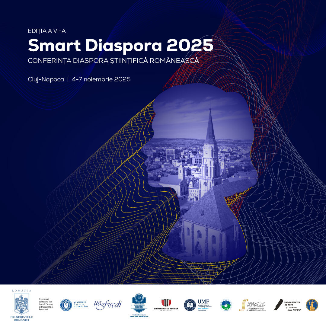 Ministerul Educației și Cercetării, împreună cu UEFISCDI, în parteneriat cu Uniunea Universităților Clujene (UUC) – Universitatea Babeș-Bolyai din Cluj-Napoca (UBB), Universitatea Tehnică din Cluj-Napoca, Universitatea de Medicină și Farmacie „Iuliu Hațieganu”, Universitatea de Științe Agricole și Medicină Veterinară, Academia de Muzică „Gheorghe Dima”, Universitatea de Arte și Design și Academia Română, vor fi gazda celei de-a VI-a ediții a Conferinței „Diaspora Științifică Românească- Smart Diapora 2025” care se va desfășura, în perioada 4-7 noiembrie 2025, la Cluj-Napoca.