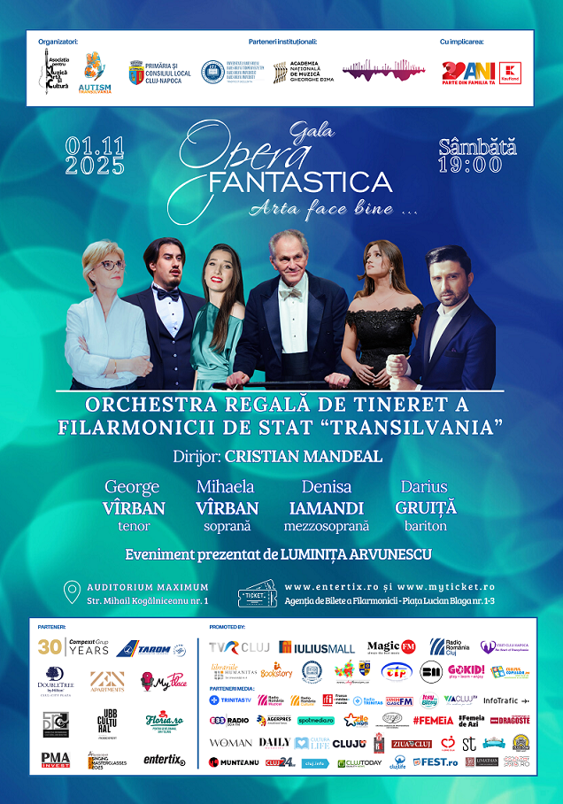 Universitatea Babeș-Bolyai din Cluj-Napoca (UBB Cluj), alături de Asociația pentru Muzică, Artă și Cultură din București și Asociația Autism Transilvania din Cluj-Napoca, cu implicarea Kaufland România, Primăriei și Consiliului Local Cluj-Napoca, Academiei Naționale de Muzică „Gheorghe Dima” și a Filarmonicii de Stat „Transilvania”, în parteneriat cu Tarom, Double Tree by Hilton Cluj-Napoca, Zen Apartments Cluj-Napoca, My Place Cluj-Napoca, PMA Invest Cluj-Napoca, Florăriile Floria din București și Bogdan Meseșan Photography, organizează sâmbătă, 1 noiembrie, începând cu ora 19.00, în Auditorium Maximum, Gala Opera Fantastică 2025.