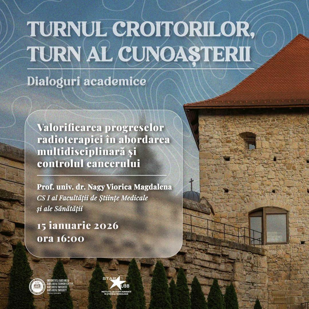 Institutul STAR-UBB al Universității Babeș-Bolyai din Cluj-Napoca (UBB) va organiza joi, 15 ianuarie 2026, de la ora 16.00, prelegerea cu tema „Valorificarea progreselor radioterapiei în abordarea multidisciplinară și controlul cancerului” susținută de prof. univ. dr. Viorica Magdalena Nagy, CS I al Facultății de Științe Medicale și ale Sănătății. Evenimentul face parte din seria de cursuri și prelegeri „Studium Generale”, găzduită de Turnul Croitorilor.