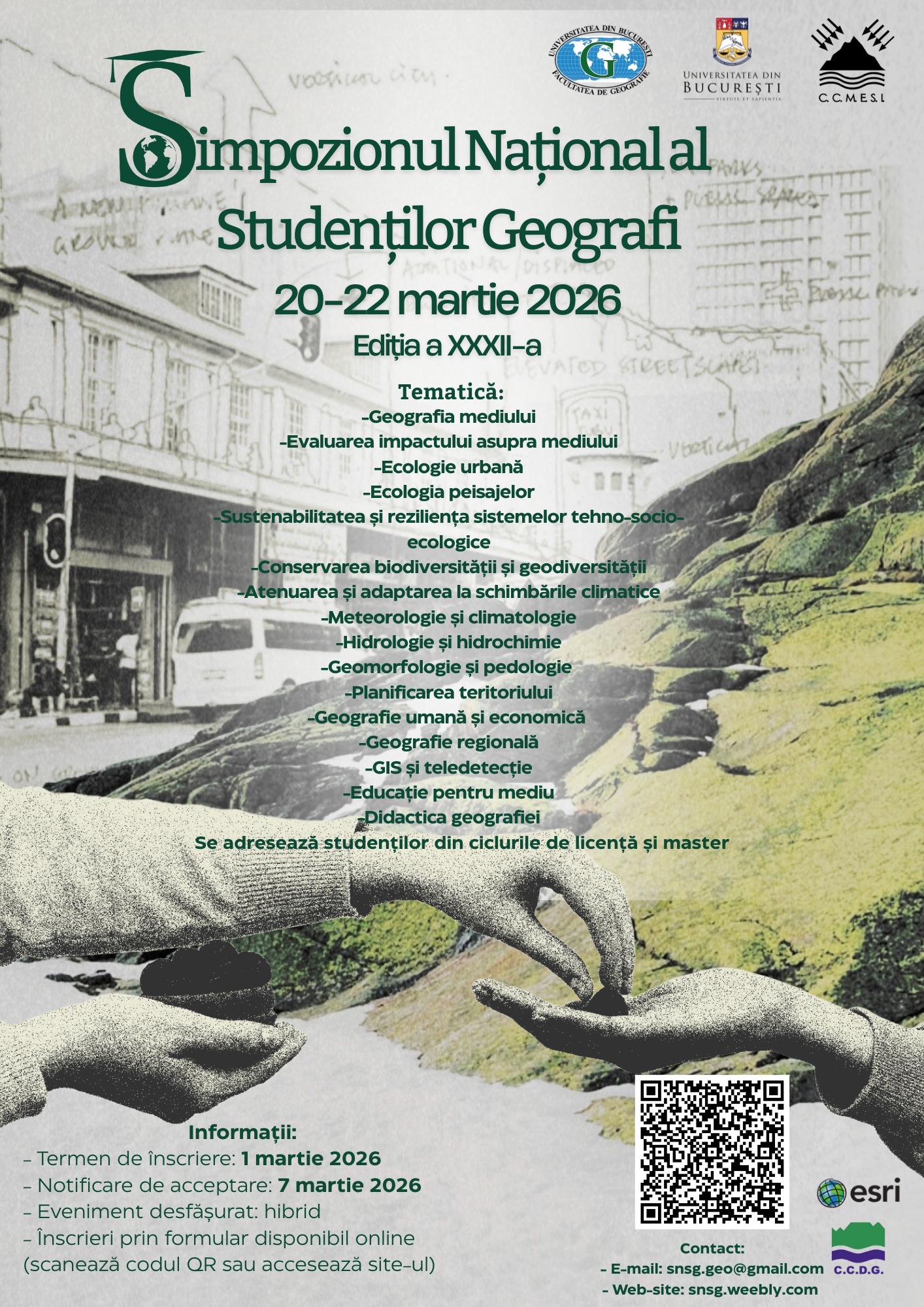 Studenții Universității Babeș-Bolyai din Cluj-Napoca (UBB) sunt invitați să participe la cea de-a XXXII-a ediție a Simpozionului Național al Studenților Geografi. Evenimentul se va desfășura în format hibrid în perioada 20–22 martie 2026.