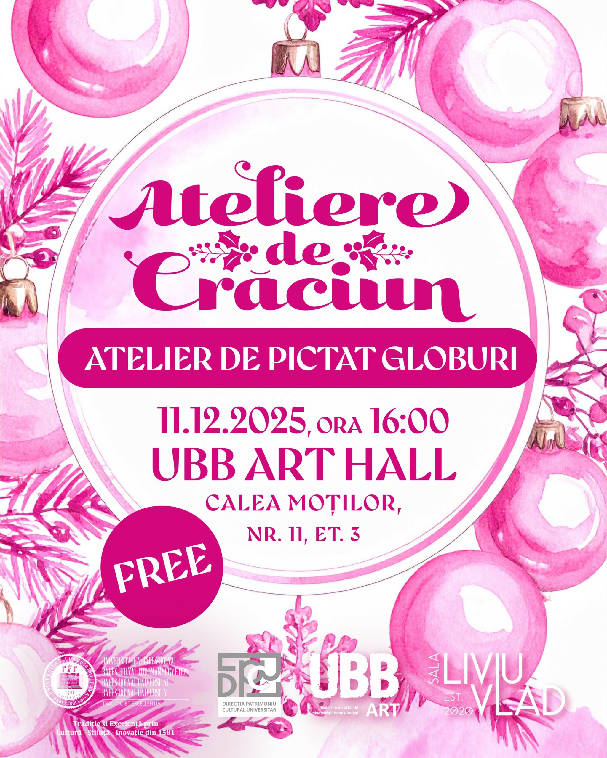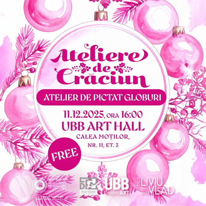 Universitatea Babeș-Bolyai din Cluj-Napoca (UBB), prin Direcția Patrimoniu Cultural Universitar (DPCU), organizează, în data de 11 decembrie 2025, în intervalul 16:00-17:00, un atelier de pictat globuri de Crăciun.