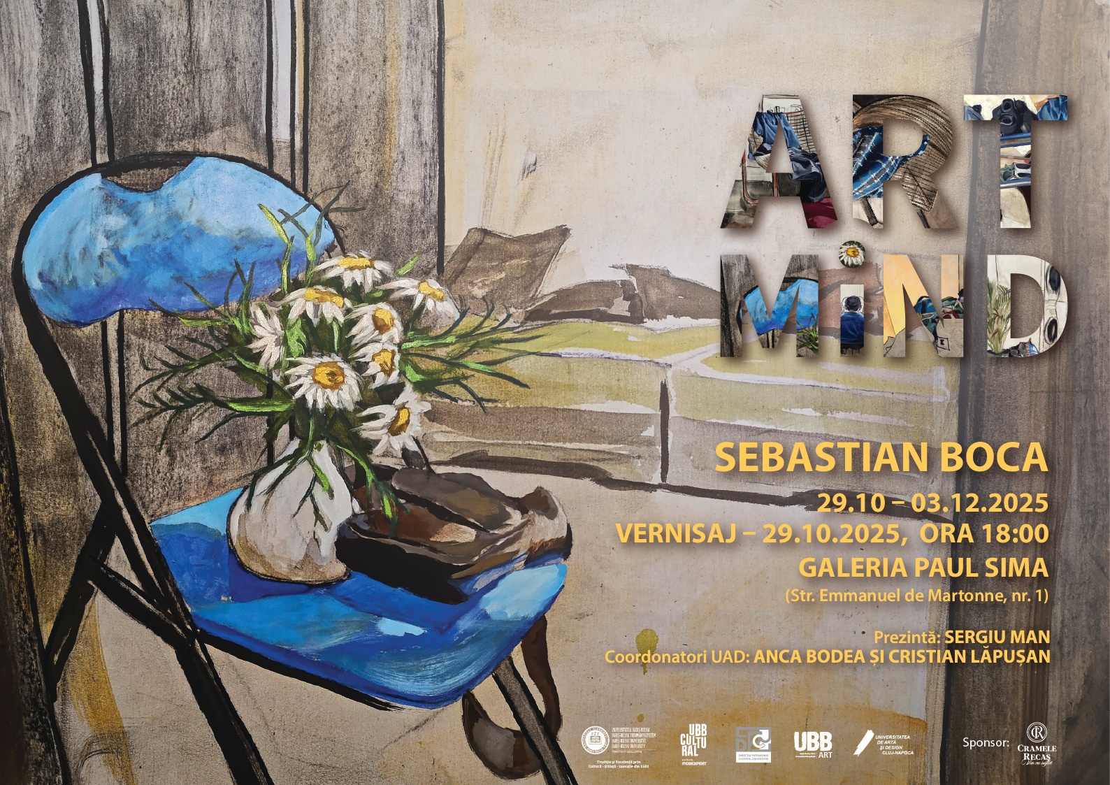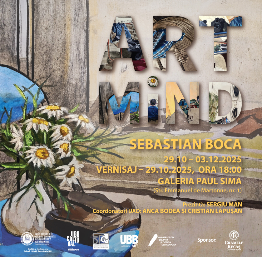 Direcția Patrimoniu Cultural Universitar a Universității Babeș-Bolyai din Cluj-Napoca (UBB), prin Galeria Paul Sima, organizează miercuri, 29 octombrie 2025, de la ora 18:00, vernisajul expoziției ARTMiND – Sebastian Boca, realizată în colaborare cu Departamentul de Pictură al Universității de Artă și Design din Cluj-Napoca.