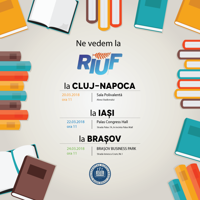Studienangebote, Wohnheime und Möglichkeiten der Freizeitgestaltung, Chancen auf Stipendien an den europäischen Partneruniversitäten und vieles mehr werden von den Vertretern unserer Universität den künftigen Studierenden vorgestellt, welche in der Zeitspanne 20.-24. März 2018 an dem größten Event im Bereich des Bildungswesens in Südosteuropa – Romanian International University Fair (RIUF) – in Klausenburg, Kronstadt und Iassy teilnehmen werden.
