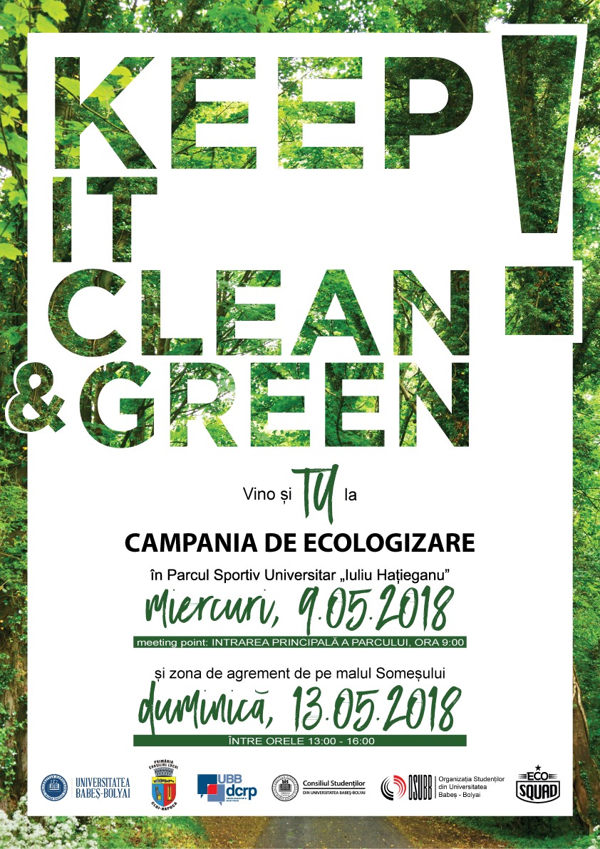 Die Babeș-Bolyai-Universität organisiert am 9. Mai 2018 ab 10 Uhr ein umfassendes Ökologisierungsprogramm im Universitätspark „Prof. Dr. Iuliu Haţieganu” und in den benachbarten Erholungsanlagen.