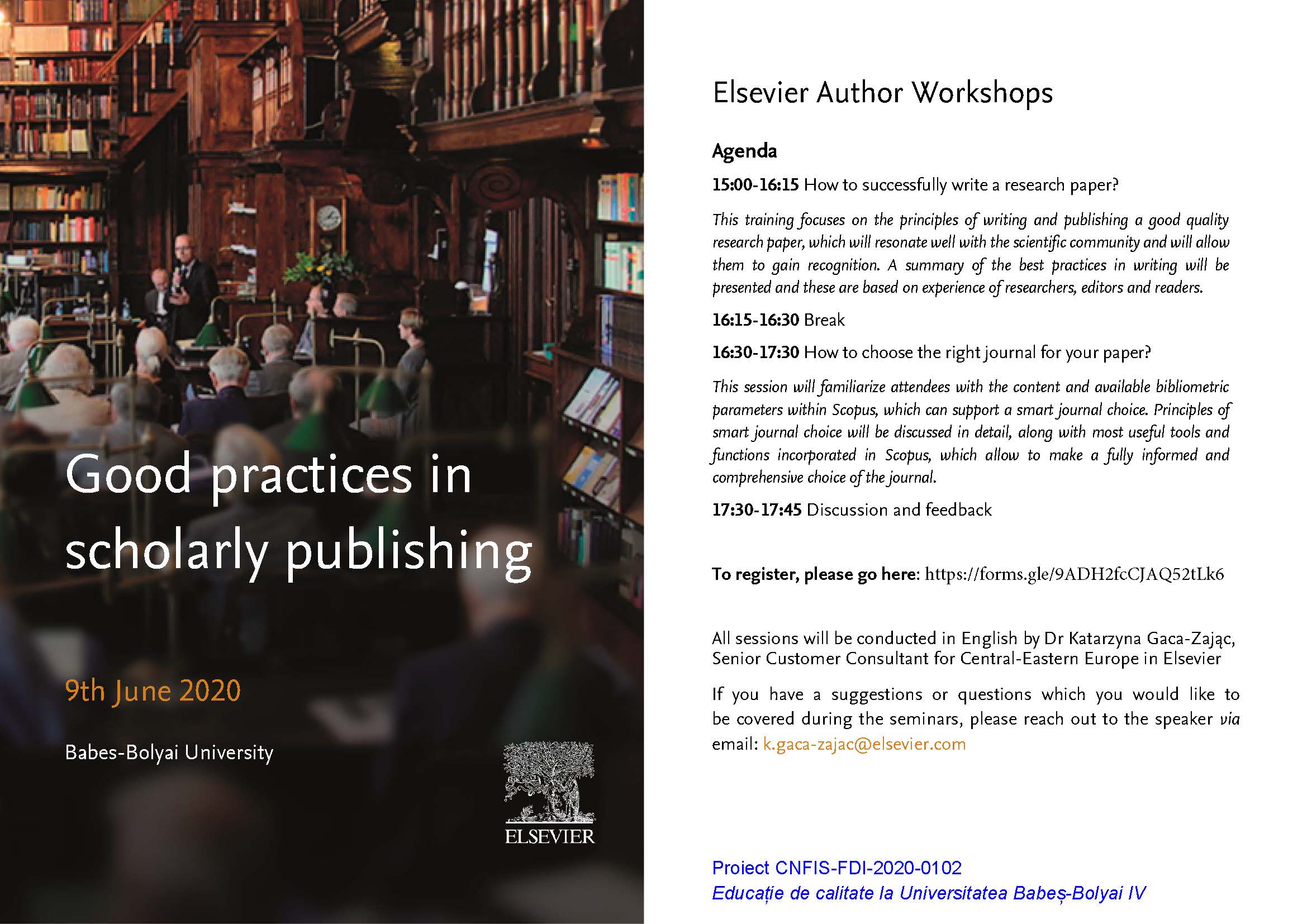 Die Babeș-Bolyai Universität organisiert, im Rahmen des Forschungsprojektes , CNFIS-FDI-2020-0102 „Educație de calitate la Universitatea Babeș-Bolyai IV”- Hohe Bildungsqualität an der Babeș-Bolyai Universität, ein Webinar zum Thema akademisches Schreiben. Das Seminar hat als Zielgruppe Masteranden und Doktoranden.