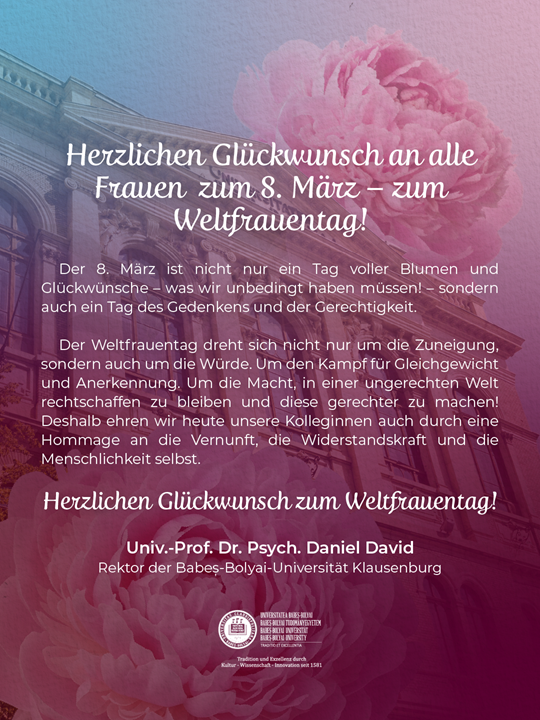 Univ. Prof. Dr. Psych. Daniel DavidRektor der Babeș-Bolyai-Universität Klausenburg