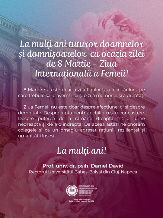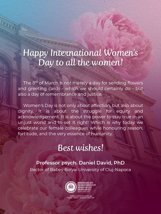 Ziua Femeii nu este doar despre afecțiune, ci și despre demnitate. Despre lupta pentru echilibru și recunoaștere. Despre puterea de a rămâne dreaptă într-o lume nedreaptă și de a o îndrepta! De aceea astăzi ne onorăm colegele și ca un omagiu adresat rațiunii, rezilienței și umanității înseși.