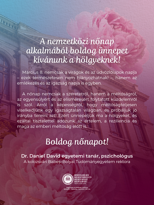 A nőnap nemcsak a szeretetről, hanem a méltóságról, az egyensúlyért és az elismerésért folytatott küzdelemről is szól. Arról a képességről, hogy méltóságteljesen viselkedjünk egy igazságtalan világban, és próbáljuk jó irányba terelni azt! Ezért ünnepeljük ma a hölgyeket, és ezáltal tisztelettel adózunk az értelem, a reziliencia és maga az emberi méltóság előtt is.