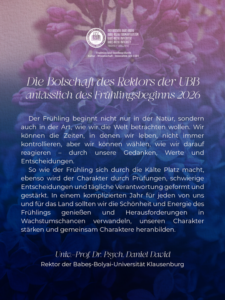 Die Botschaft des Rektors der UBB anlässlich des Frühlingsbeginns 2026