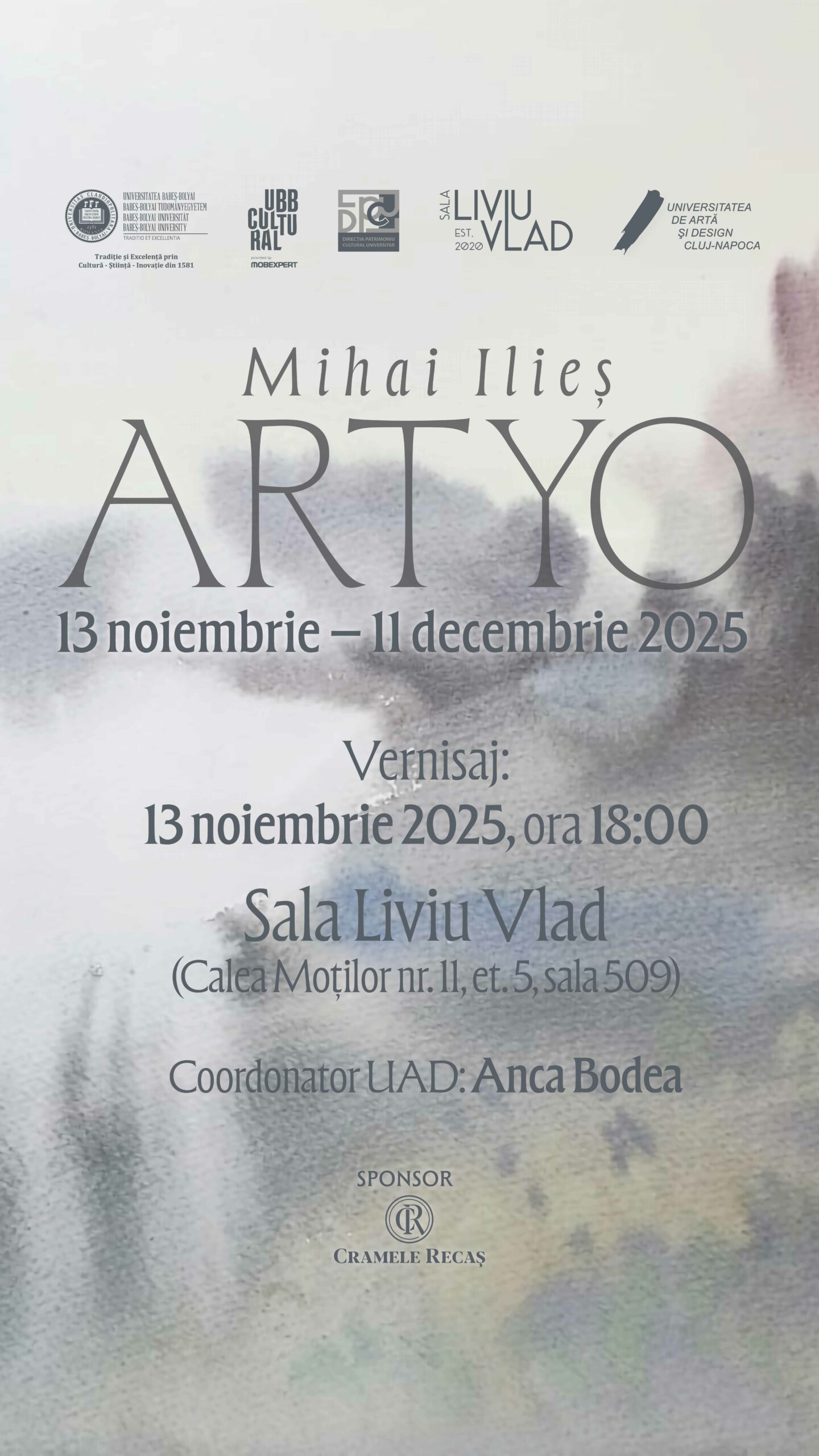 Direcția Patrimoniu Cultural Universitar a Universității Babeș-Bolyai din Cluj-Napoca, prin Sala „Liviu Vlad”, organizează vernisajul expoziției ARTYO – Mihai Ilieș, realizată în colaborare cu Departamentul de Pictură al Universității de Artă și Design din Cluj-Napoca.